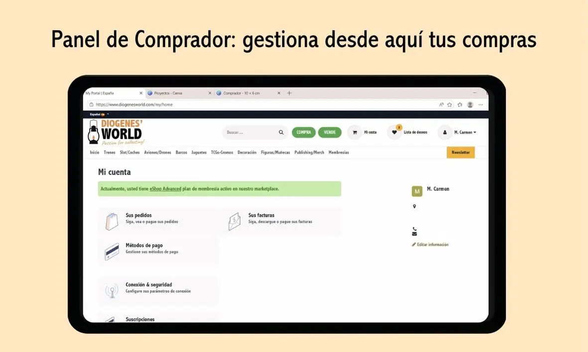 • Planes de Suscripción: Deberás elegir un plan (eShop) según el volumen de tus anuncios.